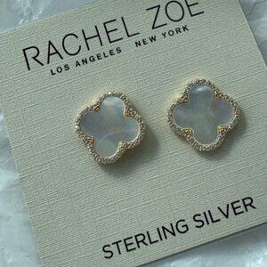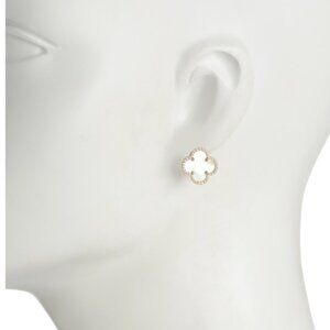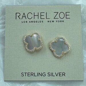 Rachel Zoe Mother of Pearl Sterling Silver 925 Gold Plated Clover Stud Earrings
