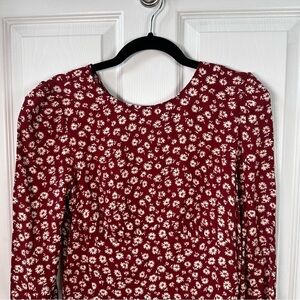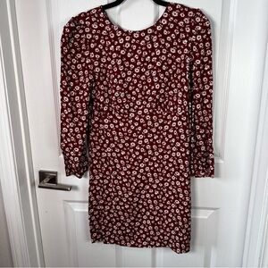 Chic mini dress with floral pattern. Features long sleeves and a round neckline. Perfect for any occasion.