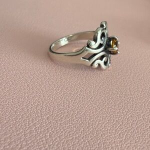 This elegant ring features a stunning silver design with a citrine stone accent, perfect for adding a touch of sophistication to any outfit.