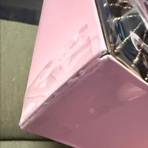 **Box- 2 corners of the pink box were received torn and the plastic cover cracked in a small area due to the way Victoria’s Secret shipped my purchase all in one bag. I placed a piece of clear tape on the corner edges. **See photos.