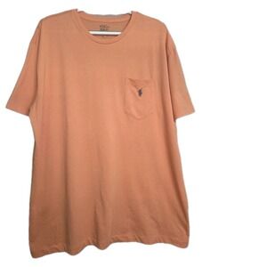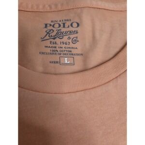 The Polo Ralph Lauren T-Shirt in Men's size Large is a classic crew neck design featuring a Navy Vlue Pony with a solid Orange color shirt. The t-shirt showcases the iconic pony logo accent on the front, adding a touch of style to the regular fit shirt. Perfect for summer, fall, and spring, this short sleeve tee is a versatile wardrobe staple for any man looking for a comfortable and stylish option. The Polo Ralph Lauren brand ensures high quality and timeless style, making this t-shirt a great choice for casual wear.