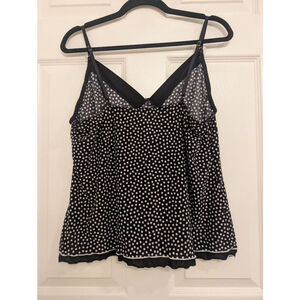 Y2K Polka Dot Babydoll Cami Dark Coquette Rosette Lace Trim Grunge Fairy Top - L
