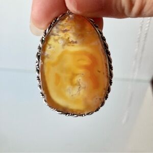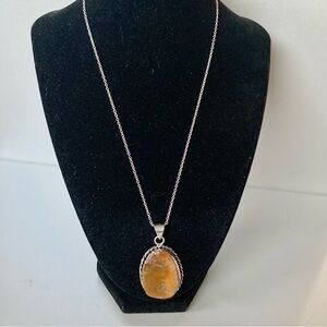 NWOT Elegant Silver and Orange natural stone Pendant Necklace