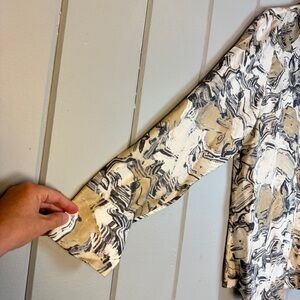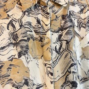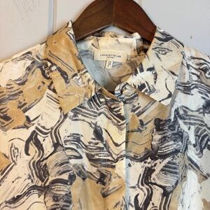 Lafayette 148 New York clementine silk blouse in latte size Medium. Abstract print.