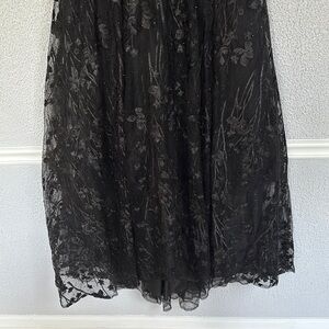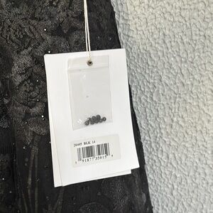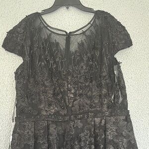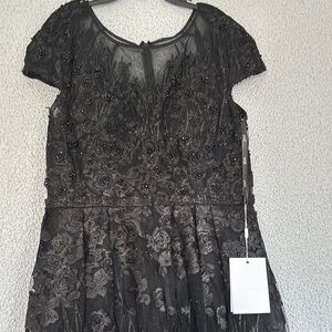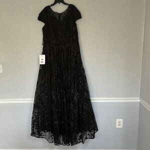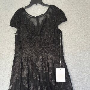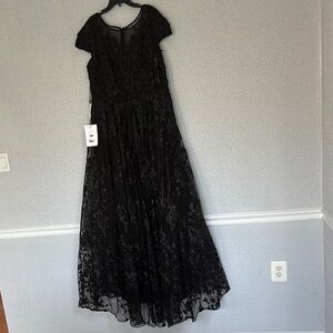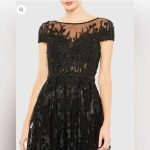 Mac Duggal Black Embellished Floral Cap Sleeve A Line Gown, Lace Maxi Dress NWT