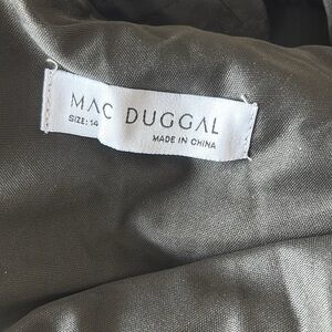 Chic black lace maxi dress by Mac Duggal. Features elegant short sleeves and intricate floral detailing. Perfect for formal events.