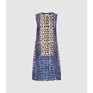 Reiss Saskia Blue Abstract Tile Sleeveless Shift Dress Size 2