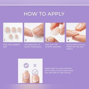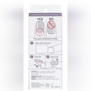 •Nail kit contains 30 perfectly manicured press on nails, prep pad, mini nail file, and manicure stick