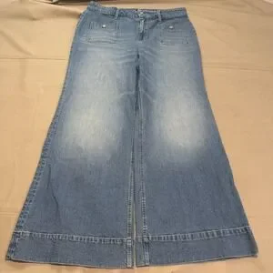 J Crew High-Rise 96 Jean Button Fly Wide Bell Bottom Flare Med Wash Women 35-5120