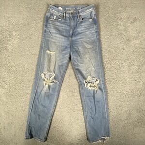 American Eagle Jeans Womens 2 Blue Baggy Jean High Rise Distressed Light Wash