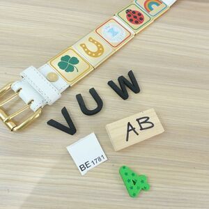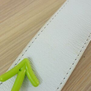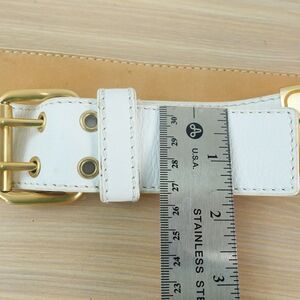 CELINE Belt 80 32 Small Western Equestrian Rugby White Gold Buckle Logo RARE VTG