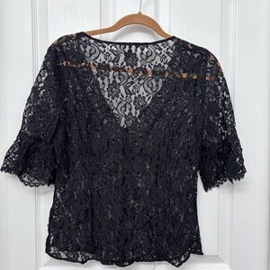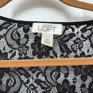 Sheer black lace with a soft, feminine drape and a polished silhouette. This LOFT top features a delicate floral lace overlay, a flattering V-neckline, and a subtle button-front detail that makes it easy to dress up or down.