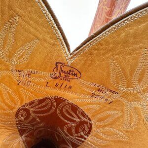 Justin L 4115 Men Size 7.5D Brown Tan Leather Pull On Western Cowboy Boot