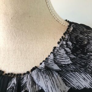Ali & Jay floral maxi dress ruffle front sheer lined size small black & white