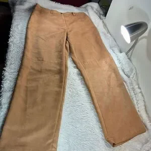 Emma James Faux Suede Tan High-Waisted Straight Leg Pants Size 16