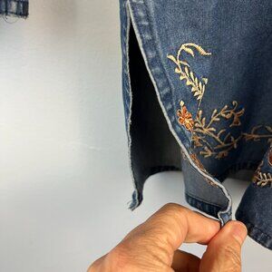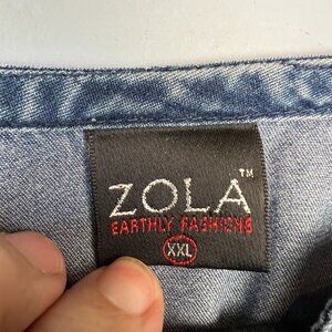 Zola Earthly Fashions Embroidered Denim Tunic Top Size XXL Boho Peasant Hippy