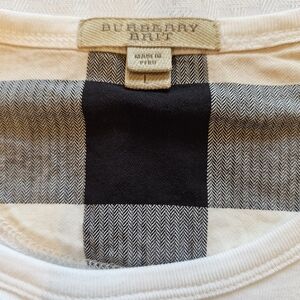 Burberry Brit long sleeve t-shirt in a soft cream color featuring classic Nova check detailing at the back neckline and elbow patches. A timeless designer piece that works well for everyday wear or layering.