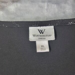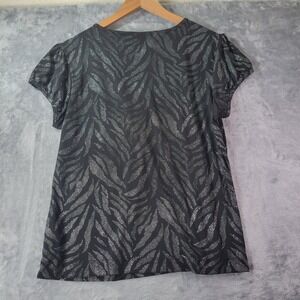 Worthington Womens Black Metallic Animal Print Stretch Evening Top XL V-Neck