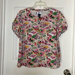 Chico’s, light beige, capris pants. 2 horizontal front pockets, 2 horizontal back pockets…all still sewn shut. 3 button decor at bottom of each leg. Metal stud at the edge of each front pocket.