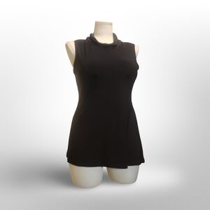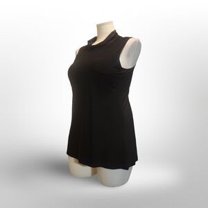 ✭This black, sleeveless, high-neck tunic top with a slight A-line flare at the hem can be worked into any look.