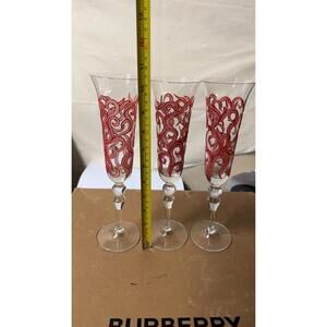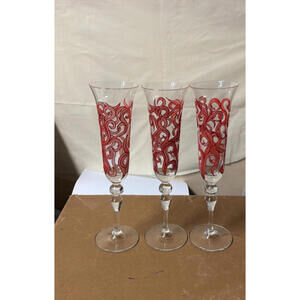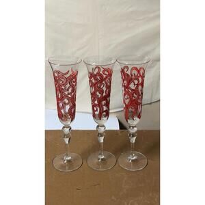 Beautiful set of 3 hand-painted champagne flutes featuring a red swirl design.Each glass is elegant, lightweight, and perfect for celebrations, display, or gifting.