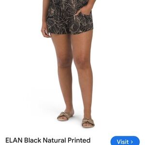 Elan Banana Leaf Print Paper Bag Black and Cream High Waist Women Shorts NWOT