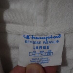 Keywords: Champion, Reverse Weave, Hoodie, Sweatshirt, Blue Logo, Yellow Logo, White Hoodie, Mens, Large, Casual, Streetwear, Athletic, Comfy, Cozy