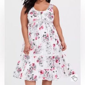 Torrid White & Pink Floral Tiered Midi Dress Size 12 NWOT