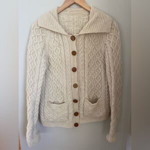 Hand Knit Cottagecore Fisherman Cardigan Cream Size Medium