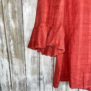 Elevate your style with this chic coral top featuring elegant ruffle sleeves. Perfect for any occasion.