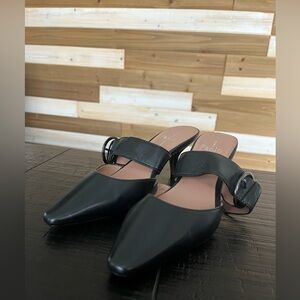 Linea Paolo Cynthia Buckled Kitten Heel Mule Black Size 4.5