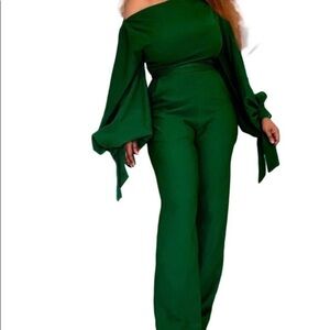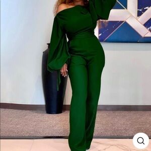Green Solid Color One Shoulder Long Flared Sleeves Women Green XL (runs small)