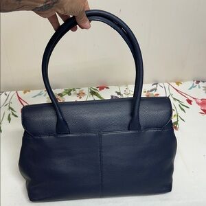 Chic leather tote in midnight blue. Features elegant design and spacious interior. Ideal for daily use. Beautiful Bag Italian leather Has a small crease from storage very slight.