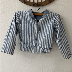 Vintage Reversible Chambray Denim Pinstripe Cow Patch Zip Jacket Kids