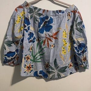 This relaxed blouse from Zara features a ruffled neckline and 3/4 sleeves, offering a comfortable and stylish fit. The gray and blue color palette is complemented by a vibrant floral pattern, making it a standout piece for any casual occasion. Its flowing silhouette adds a touch of elegance to your everyday wardrobe.