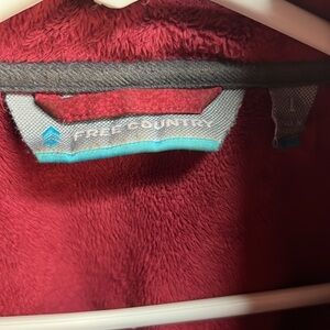 Red free county jacket. One of the zippersrs is missing jacket is stilll completely wearable. Size large