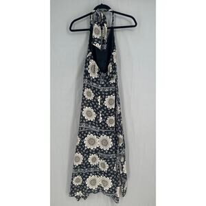90s Vintage Dress Womens 8 Black Maxi Floral Halter Flowy Boho Y2K Handkerchief