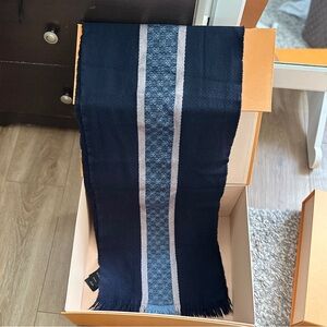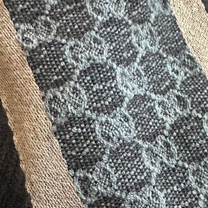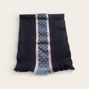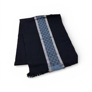 Elevate your everyday style with this authentic Gucci Sherry Line scarf, featuring classic black and deep blue tones with the iconic woven stripe detail. A timeless accessory that adds effortless sophistication whether worn around the neck, draped over the shoulders, or styled on a handbag.