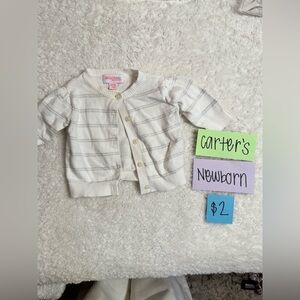 ❤️ NWOT Carter's Infant Cream Striped Button-Up Cardigan, Newborn