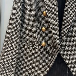Elegant houndstooth blazer by Express. Features striking gold accents. Ideal for a polished look.