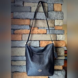COACH C2818 Val Duffle Bag Purse Crossbody Black Pebbled Leather Gold Hardware