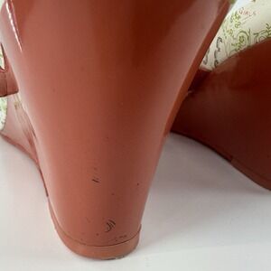 BCBGirls Wedge Heel Flip Flops Womens Size 8 Orange White Logo Print Y2K Sandals