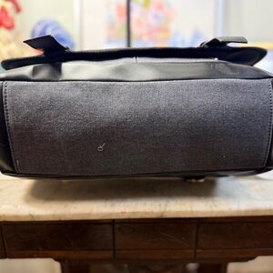 NWT, London Fog charcoal/gray denim canvas messenger bag with black accents and gold-plated hardware.