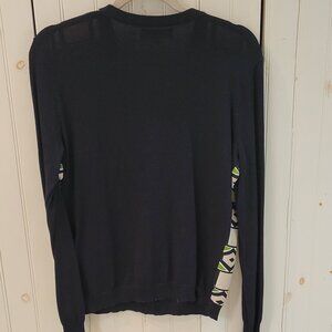 Menswear inspired super cool cardigan. I love this sweater and for the life of me, I don't know why I haven't worn it more often. There is a faint stain on the front (see photo) It may come out but I can't guarantee it. It's barely noticeable. Great color combo and pattern, very unique. I have not seen another one like it anywhere.