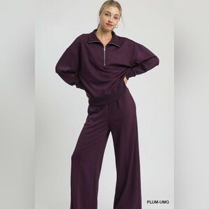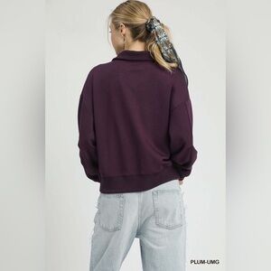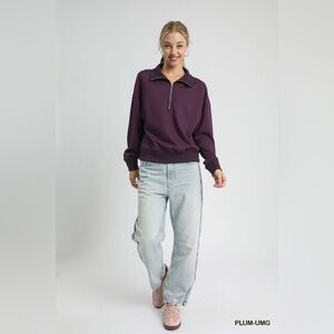 Umgee Half Zip Drop Shoulder Sweatshirt