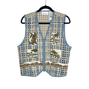 Vintage Casey & Max Patchwork Safari Animals Lattice And Plaid Cotton Linen Vest