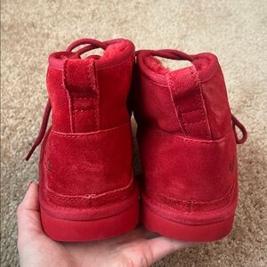 Unisex Samba Red Fur lined lace up Suede Booties!