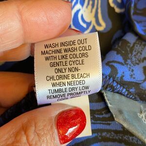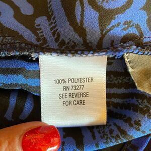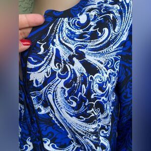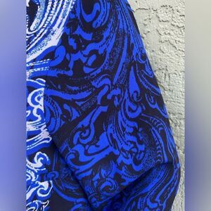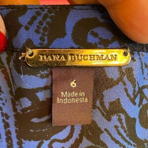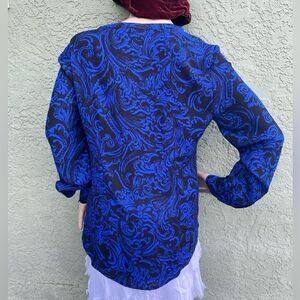 EUC DANA BUCHMAN Blue/Black Boho V-Neck Button Up Long Sleeve Blouse Size 6