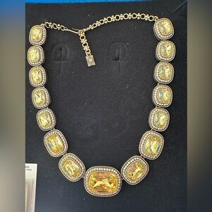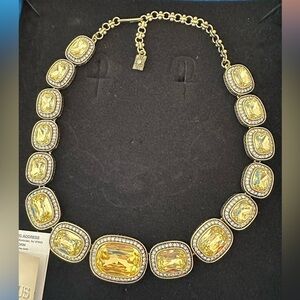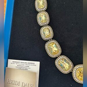HEIDI DAUS Vintage Necklace Jewelry Bronze Citron Crystal HUGE crystals and with original box and warranty card.