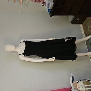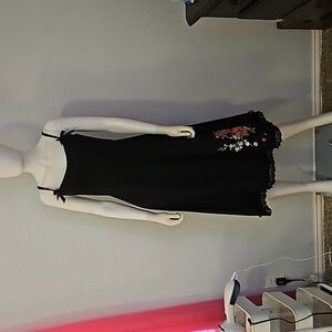LUCKY 13 Retro Black Floral Lace Spaghetti Bow Strap Pin-up Rockabilly Dress